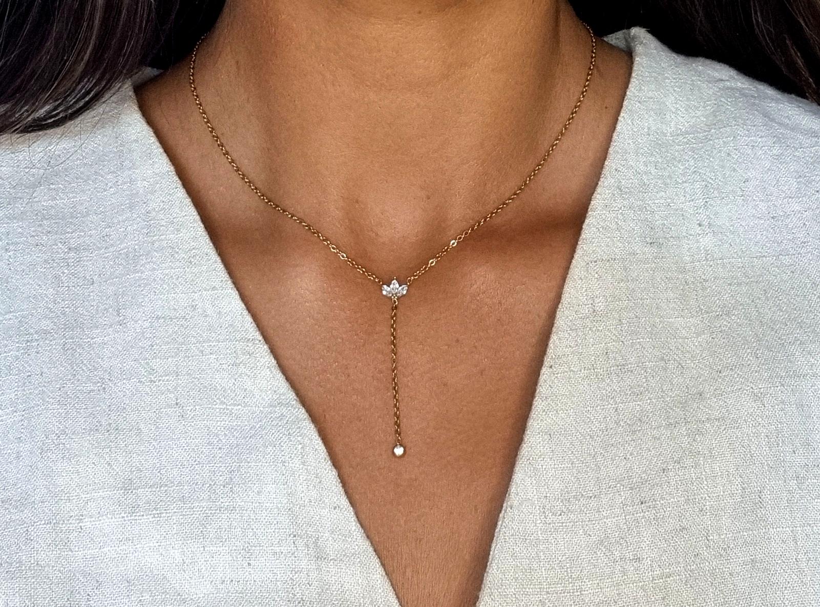 Fin, élégant et subtilement romantique, le collier Ayla sublime le creux du cou avec délicatesse.