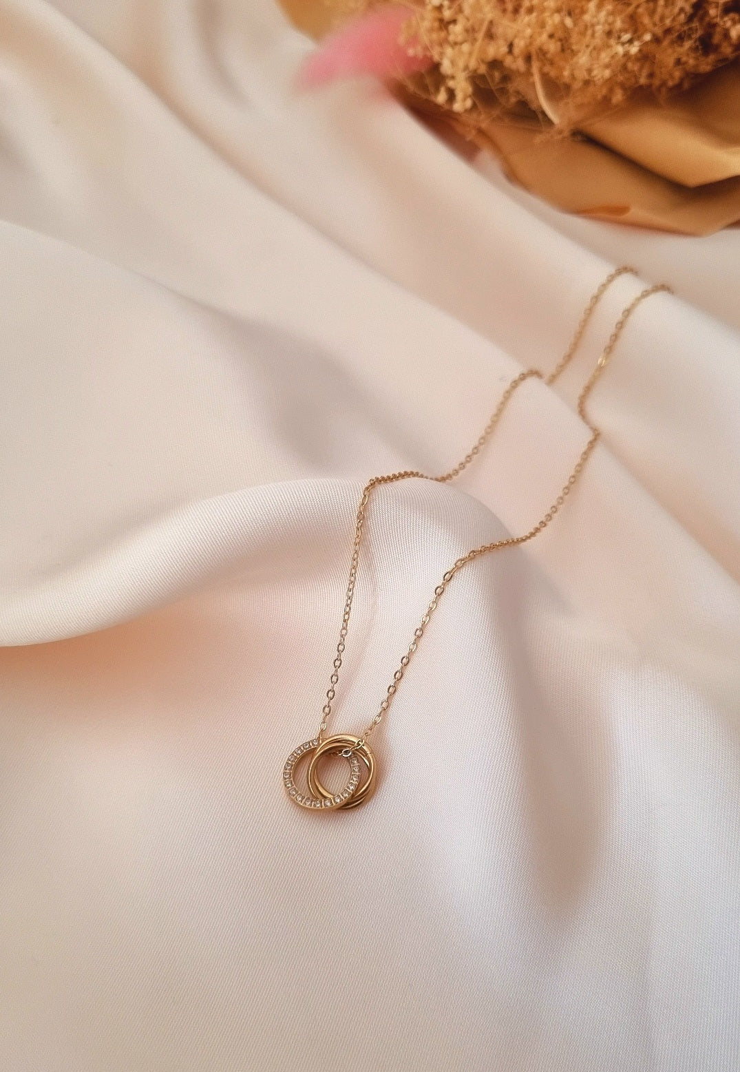 Le collier Onaly incarne la simplicité sophistiquée. Avec ses lignes épurées et sa finition dorée, il habille le cou avec finesse lumineuse et élégance.